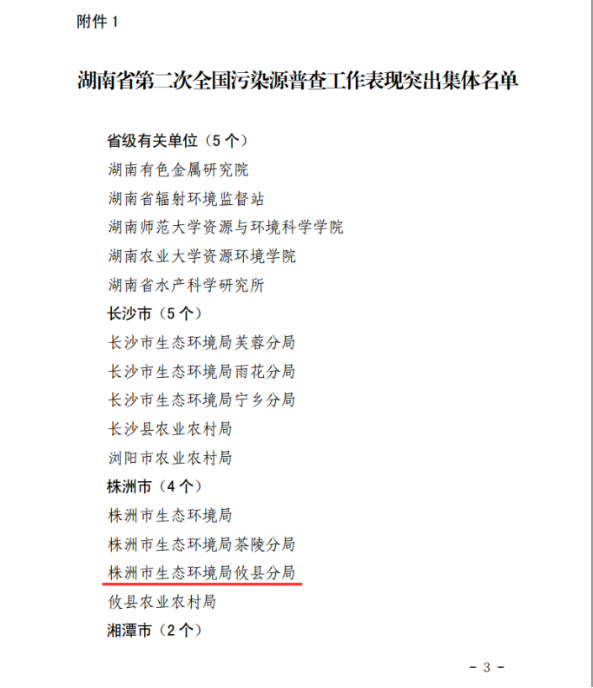 2020年10月12日,湖南省生態環境保護委員會辦公室表揚省級污染源普查表現突出集體和個人。株洲市生態環境局攸縣分局獲得湖南省第二次全國污染源普查工作表現突出集體榮譽稱號。作為長沙市、株洲攸縣、株洲淥口區的污染普查技術承擔單位,清之源環保科技有限公司全力以赴,與業主單位默契配合,為當地污普獲得上級部門的高度肯定做出了應有貢獻。